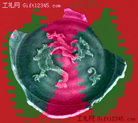 近見《中國(guó)宋元瓷器》書中有載,廣東博物館收藏的龍泉窯梅子青堆貼蟠龍盤(圖3),被標(biāo)定為元代,其龍頭鳳尾紋浮雕之出筋、撕筋瓷藝,與筆者收藏的龍紋殘瓷完全一致,只是廣東瓷盤少了一個(gè)繡球,足徑小了1.9厘米,應(yīng)該說(shuō)兩瓷盤不是一個(gè)版本的。筆者由此多了一個(gè)思路,企求賢達(dá)指點(diǎn)迷津: