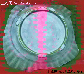 一、露胎圈足脊應(yīng)是朱砂色。嚴(yán)格的說(shuō),圈足脊露胎,是龍泉窯宋元青瓷獨(dú)特的胎裝飾的又一例證。在還原焰氣氛燒成后,胎泥中含2%%以下鐵質(zhì)的紫金土成氧化亞鐵的原真發(fā)色,便是艷而不媚的朱砂紅,這是標(biāo)準(zhǔn)色。在四十倍帶光放大鏡下,可見柔和朱紅膨化狀胎體。常在市肆中有見灰黑色及澀紫黑色圈足脊,實(shí)是偽色!