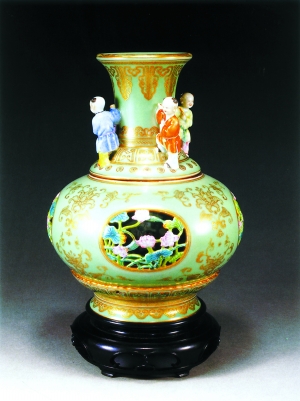 明清時(shí)期是嬰戲圖的鼎盛期,從簡(jiǎn)單的一兩個(gè)幼童形象發(fā)展到百多個(gè)幼童,幼童神態(tài)各異。嬰戲圖的流行,反映了當(dāng)時(shí)的民眾心理。傳統(tǒng)的封建社會(huì)又把傳宗接代的觀念深入人心,因而寓意連生貴子、五子登科、百子千孫的圖案,就成為瓷器常見的裝飾圖案。