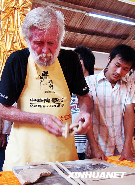 10月19日,在江西省景德鎮(zhèn)市新都陶瓷園中華陶藝村內(nèi),來自世界各地的陶藝精英現(xiàn)場(chǎng)展示陶藝制作。