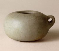 說 明: 器身扁圓。胎白色,施粉青色釉,釉厚,光滑潤澤,有玉一般的質(zhì)感。