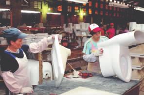 出模的泥坯要經(jīng)過干燥、修坯、洗坯、驗(yàn)坯等工序,確保半成品質(zhì)量。