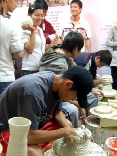 9日,由景德鎮(zhèn)陶瓷學(xué)院美術(shù)學(xué)班的五名學(xué)生自辦的景德鎮(zhèn)非物質(zhì)文化遺產(chǎn)——制瓷手藝展拉坯比賽在該市御窯廠如期舉行。這一由大學(xué)生自己主辦的活動(dòng),吸引了眾多學(xué)生和市民關(guān)注。