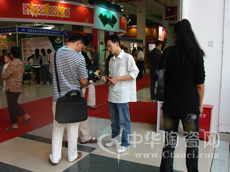 中華陶瓷網(wǎng)工作人員在現(xiàn)場(chǎng)向客商介紹及發(fā)放《陶瓷之路》期刊等相關(guān)資料