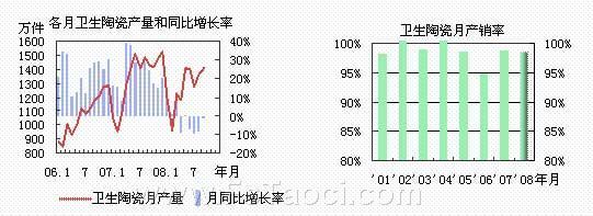 1-9月衛(wèi)生陶瓷累計產(chǎn)銷率96.79%,比去年同期增加0.69個百分點。當(dāng)月產(chǎn)銷率98.55%。