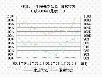 9月建筑陶瓷制品出廠價格比上月下降0.39%,比去年同月高6.44%。其中釉面磚比上月下降1.38%,比去年同月高6.72%。墻磚比上月上漲0.21%,比去年同月高6.55%。地磚比上月下降0.55%,比去年同月高4.79%。