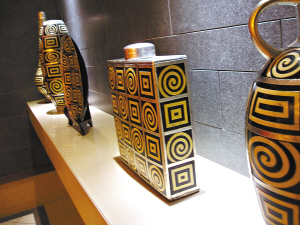 這一系列的花瓶,線條分明,飄逸流暢。沉穩(wěn)的古銅色讓人仿佛置身于春秋戰(zhàn)國(guó)時(shí)代,這類以陶瓷做成的花瓶,用來(lái)點(diǎn)綴居室最能營(yíng)造出古雅的文化氛圍,不失為彰顯品位的一種選擇。