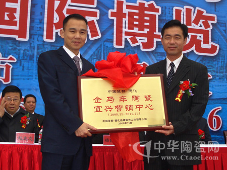 福建省德化縣縣長李輝躍為金馬車宜興營銷中心授牌,副縣長授牌黃耀坤介紹了德化陶瓷發(fā)展及歷史。