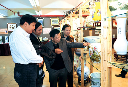 在現(xiàn)場,記者看到除了當?shù)氐奶沾伤囆g(shù)愛好者和收藏家相約來觀看展覽外,還有不少外地趕來欣賞的觀眾,連外國友人聞訊也趕來一睹景德鎮(zhèn)名家名瓷的風(fēng)采。“看了報道,知道有這樣高水平的陶瓷展覽,所以我就約了幾位同樣對陶瓷感興趣的朋友一起來欣賞。”黃先生這樣告訴記者。當日下午,胡強還為廣大觀眾作了題為“景德鎮(zhèn)當代陶瓷藝術(shù)裝飾的書卷氣”的講座。