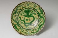 圖片名稱: 黃釉綠龍菊瓣盤