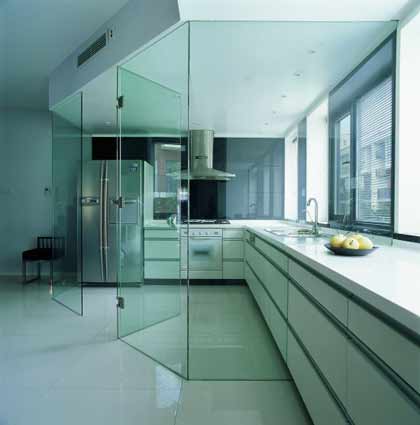 開放式廚房近年來受到不少人的青睞,但是中國人的烹飪方式容易使廚房里的油煙擴散到其他空間。采用玻璃墻對開放式廚房和其他空間進(jìn)行分隔是解決這一問題的好方法。透明的玻璃墻很好地保證了開放式廚房的開闊感和透亮性,在視覺效果上不打折扣,而烹飪時的油煙擴散問題也能因此得以解決。
