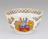 器物薄壁,施釉上粉彩和金彩。器身有不知名的紋章圖案和用金彩繪制的花卉。