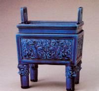 圖片名稱: 孔雀綠釉凸螭紋方鼎