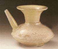 喇叭形口,長頸,扁圓腹,餅形底,腹一側(cè)附細長管狀流;形制精巧,為佛教僧侶的凈手用器。器物胎體勻厚,胎色頗白。