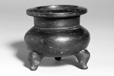此尊元代黑陶三足爐的賣主是我熟識的,他知道我在收藏和研究香爐文化,特意從北方給我捎帶來。據(jù)說此物在山西長治附近出土,同時(shí)出土的還有一對黑陶貫耳瓶等。我看這個(gè)香爐品相完美,就把它留下了,盡管對于元是否存在黑陶我心有疑慮。