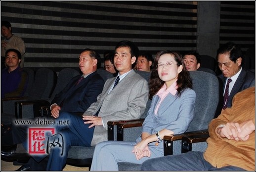 縣長(zhǎng)李輝躍、副調(diào)研員黃發(fā)建、新光三越文教基金會(huì)執(zhí)行長(zhǎng)洪炳棟、臺(tái)灣工藝研究所長(zhǎng)林正儀、臺(tái)灣陶藝協(xié)會(huì)理事長(zhǎng)蘇立正、德化陶瓷文化臺(tái)灣參訪團(tuán)成員和臺(tái)灣業(yè)界、商界的部分知名人士以及臺(tái)灣各大媒體記者出席開幕盛典,李輝躍在開幕式上發(fā)表了熱情洋溢的講話,介紹了德化的概況和陶瓷文化歷史;李輝躍、洪炳棟等為德化白瓷鑒賞展揭幕。盛典儀式還邀請(qǐng)了臺(tái)灣知名樂隊(duì)前來演奏,烘托優(yōu)雅氣氛。