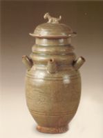 圖片名稱(chēng): 龍泉窯青釉五管帶蓋瓷罐