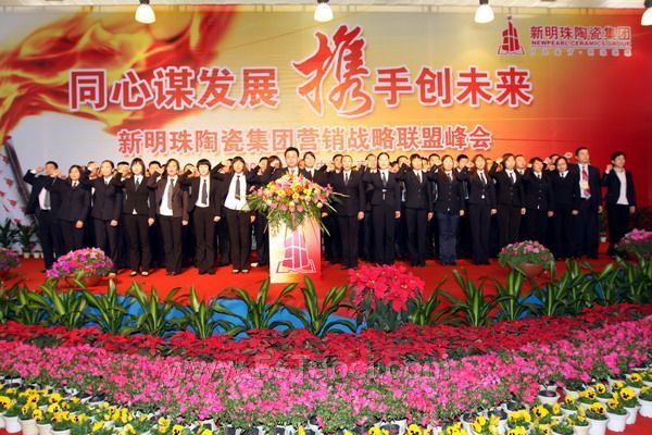 在激昂澎湃的《中國新明珠》進行曲中,“同心謀發(fā)展.攜手創(chuàng)未來——新明珠陶瓷集團營銷戰(zhàn)略聯(lián)盟峰會”拉開了帷幕——一支由新明珠的近3000名經銷商總代理以及企業(yè)全體人員共同點燃的奮進之火燃燒著這個冬日這支火焰正以燎原之勢向著這個冬季的終點席卷而去……