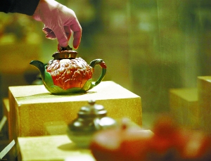 28日,一件估價(jià)38萬元、出自我國(guó)當(dāng)代紫砂大師蔣蓉之手的紫砂壺——“牡丹”亮相北京古玩書畫城藝術(shù)館。