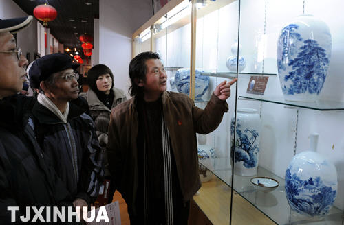 28日,“景德鎮(zhèn)陶瓷藝術(shù)家劉敏青花瓷作品展”在南開區(qū)迎水道天津民間藝術(shù)展示中心展出。