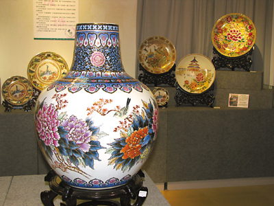 這次參展的作品就有知名的《堆金花鳥天球瓶》(見上圖),還有潮州唯一的國家陶瓷藝術(shù)大師吳為明的拿手好戲“色釉碟”,其采用高溫色秞作為顏料,通過燒制成一幅別開生面的山水畫。展覽在廣州荔灣區(qū)周門北路40號首層彩虹會,2009年1月5日結(jié)束。