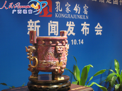 “感謝中方贈送了如此精美的藝術(shù)品,使我們領(lǐng)略到了中國陶瓷文化獨(dú)特的藝術(shù)魅力。”10月26日,在廣西壯族自治區(qū)首府南寧舉行的第五屆中國—東盟博覽會上,由孔家鈞窯制作的國禮《象天鼎》,再次得到新加坡、越南、菲律賓等東盟10國領(lǐng)導(dǎo)人的贊賞。來自河南省許昌市的民營企業(yè)制作的孔家鈞瓷已連續(xù)三屆被博覽會選作國禮。