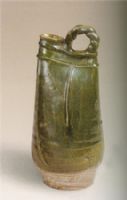 圖片名稱: 綠釉貼塑條紋雞冠壺