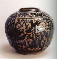 圖片名稱: 黑釉剔粉雕劃花紋罐