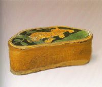 圖片名稱: 三彩釉剔地刻虎紋三瓣花形枕