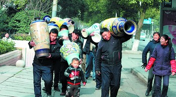 “只要你看中了,出多少錢都行。”昨日,在東風(fēng)路省人民體育場前人行道上,一群景瓷商人扛著大瓷器,邊走邊賣。這種搞怪的方法吸引了不少路人的眼光。“銷售不景氣,不得已把瓷器搬上街。”其中一名商人說。