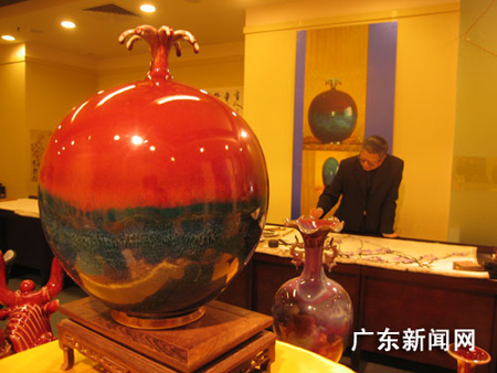 國寶鈞瓷美煥絕倫、嶺南書畫墨韻靈動(dòng); 1月6日,河南禹州鈞瓷文化交流中心與廣東嶺南國畫院在廣州月亮灣酒店舉行了一場別開生面的藝術(shù)交流活動(dòng),近百件經(jīng)過精心挑選的“國禮鈞瓷”藝術(shù)品和嶺南派書畫作品首次同時(shí)聯(lián)展,鈞文化與嶺南文化相得益彰,給廣州帶來一場視覺的盛宴。