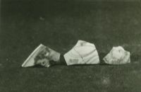 為器物殘片,胎灰色,釉青色,青花鈷料,色澤灰淡,胎薄,根據(jù)殘物器物為碗,盞類.