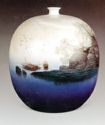 江西高級(jí)工藝美術(shù)師解強(qiáng)的“故鄉(xiāng)的云小口圓瓶”