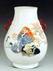 陶瓷老藝人鄒寶林的“粉彩趙顏求壽同心瓶”