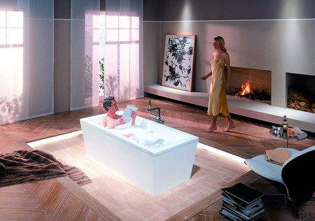 在整體裝飾上,現(xiàn)代浴室與家居生活的界限正在逐漸模糊,布局上趨向于敞開式,與臥室融為一體,更像一個(gè)家庭SPA的地方,是一個(gè)充分放松心情的享受空間。不少家庭還把臥室裝飾風(fēng)格延伸到衛(wèi)浴空間,引入綠化、布藝、掛畫等裝飾材料,營(yíng)造古典、現(xiàn)代等多種風(fēng)格。