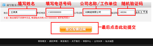 3、填寫個人信息,如下表,后點“提交投票結(jié)果”