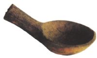 敞口,平沿,半瓜形;一側(cè)接出一執(zhí)柄,柄端中部凹進(jìn),或可再安木柄。器內(nèi)壁施黃釉,薄而不勻,外壁及柄無(wú)釉。