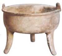 此鼎造型古樸,挺拔,器表打磨光亮,與銅器十分相像,惟掂重量方知為陶器。春秋晚期至戰(zhàn)國,陶器製作流行仿制青銅器的造型和紋飾。