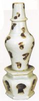 用褐彩裝飾瓷器在我國出現(xiàn)較早,南京出土有三國時褐彩壺。雨晉南朝褐彩流行,宋元晴偶有採用。此瓶蓮座褐彩造型端正,釉彩美觀,屬典型元代製品,在元瓷中常見。成封出土,惟缺紀(jì)年資料。