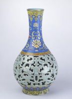 圖片名稱: 青釉鏤空粉彩描金夔鳳紋套瓶