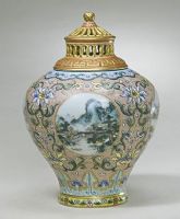 圖片名稱: 粉彩開光四季山水蓋罐