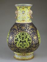 圖片名稱: 粉彩鏤空蟠螭紋象耳轉(zhuǎn)心瓶