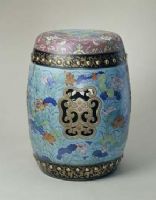 繡墩盛行于明清兩代。此繡墩為乾隆時(shí)的代表作品,制作精美,應(yīng)用了多種彩飾工藝,而層次分明,使繡墩端莊古樸的造型透出幾分俏麗的情調(diào)。色地上以斗彩進(jìn)行裝飾本已艷麗,此器又增加了軋道粉彩工藝,愈顯奢華。