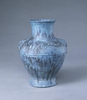 爐鈞釉是清代雍正時(shí)期景德鎮(zhèn)御窯廠創(chuàng)燒的一種瓷器顏色釉,盛行于乾隆時(shí)期。因史籍中有“爐鈞一種,乃爐中所燒”的記載,故稱“爐鈞釉”。其工藝是先以高溫?zé)纱商,掛釉后于低溫彩爐中二次焙燒成器,釉面呈現(xiàn)紫紅、月白、蔥綠等色,因釉面流動(dòng),多種釉色融熔于一體,有的藍(lán)中帶紅色斑點(diǎn),有的青藍(lán)色中閃現(xiàn)點(diǎn)點(diǎn)藍(lán)斑,頗顯華美。