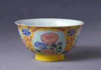 圖片名稱: 黃地開光琺瑯彩花卉紋碗