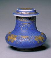 圖片名稱: 灑藍釉描金花卉紋帶蓋糊斗