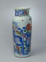 此瓶造型古樸厚重,施彩豐富,具有中國(guó)傳統(tǒng)花鳥(niǎo)畫(huà)的特色。此種瓶式是清順治、康熙時(shí)最為流行的器形。
