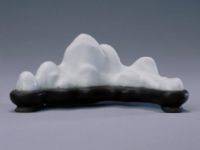此器釉色仿宋代青白瓷之效果,釉色青瑩,其質(zhì)感如青白玉。山形高低錯落有致,富有層次感,視之恍如文人畫中層巒淡遠(yuǎn)的境界。