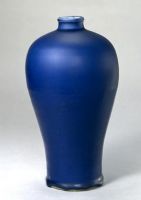 此瓶造型端莊古樸,釉色濃重而勻凈深沉,釉面瑩潤,是明嘉靖藍釉瓷器的精品。