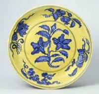 嬌黃釉于成化時始出現(xiàn),但數(shù)量較少,到弘治時取得突出的成就,器物以盤碗為主。弘治朝官窯瓷器